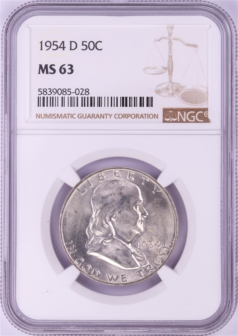One 1954-D Franklin Half Dollar Coin NGC MS63. NGC Certified.