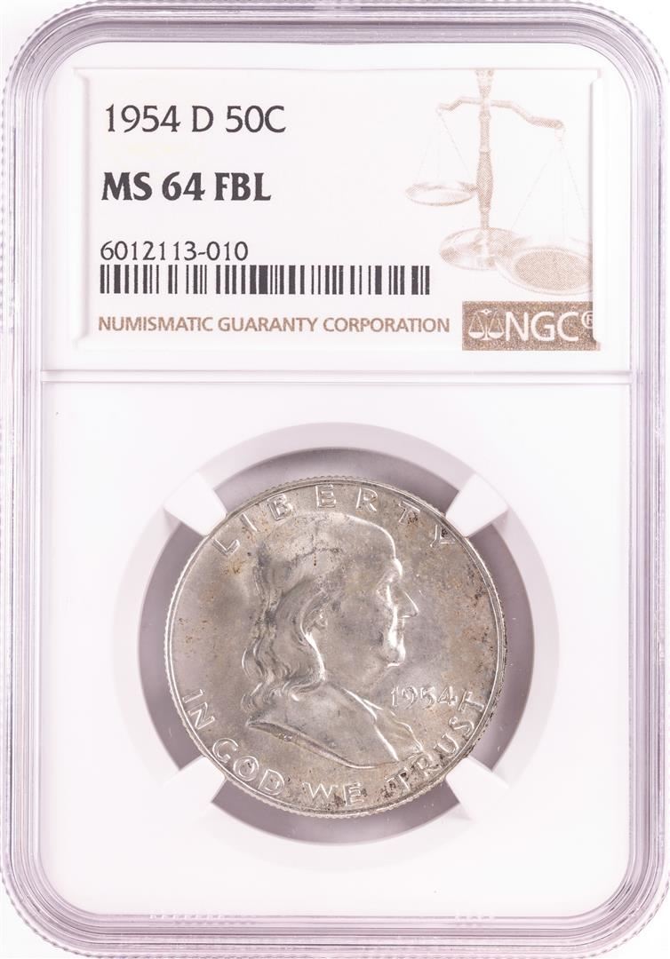 One 1954-D Franklin Half Dollar Coin NGC MS64FBL. NGC Certified.