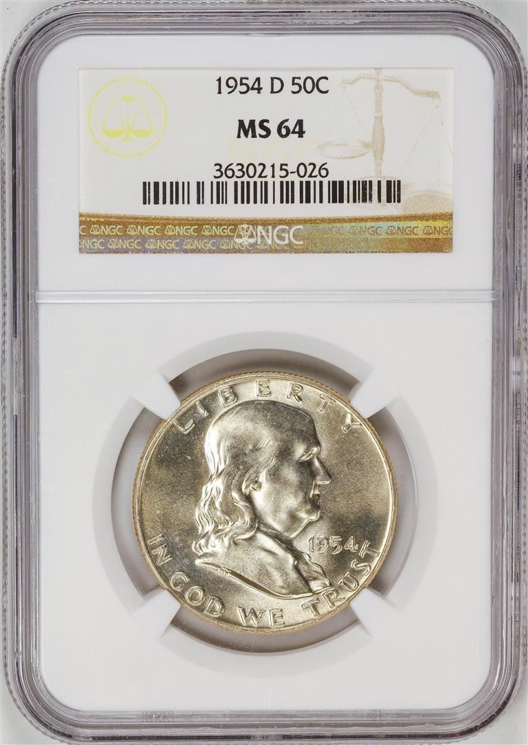 One 1954-D Franklin Half Dollar Coin NGC MS64.