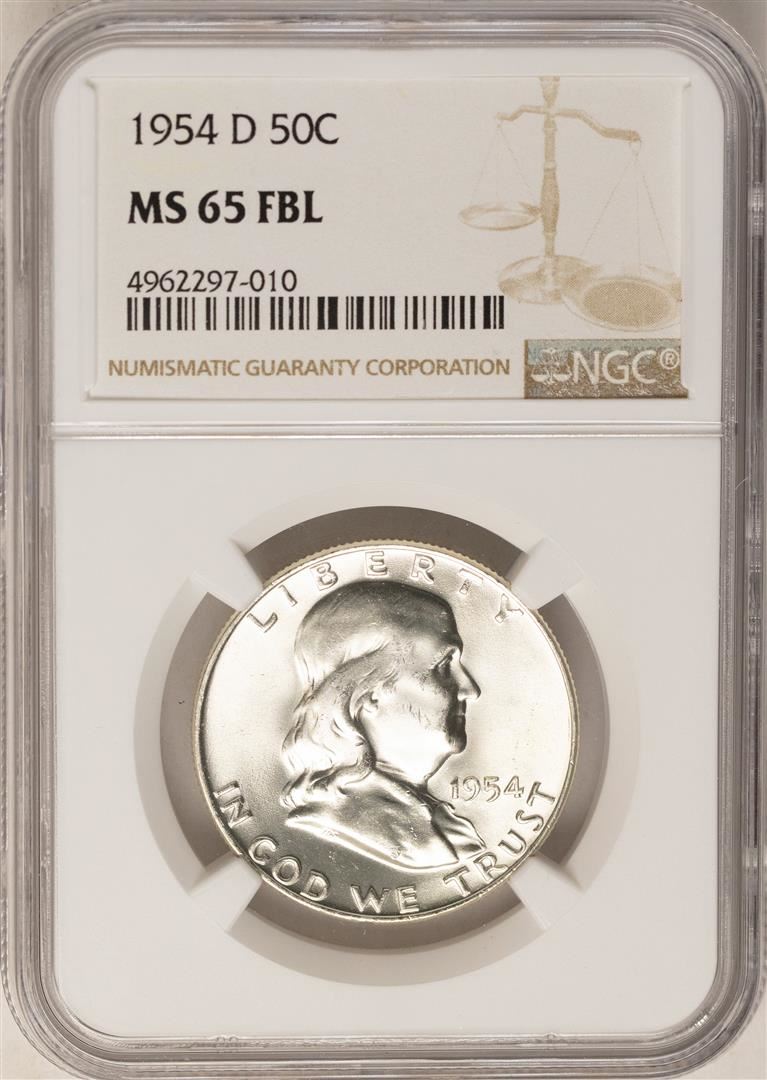 One 1954-D Franklin Half Dollar Coin NGC MS65FBL. NGC Certified.