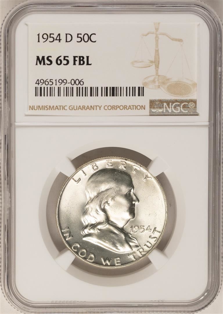One 1954-D Franklin Half Dollar Coin NGC MS65FBL. NGC Certified.