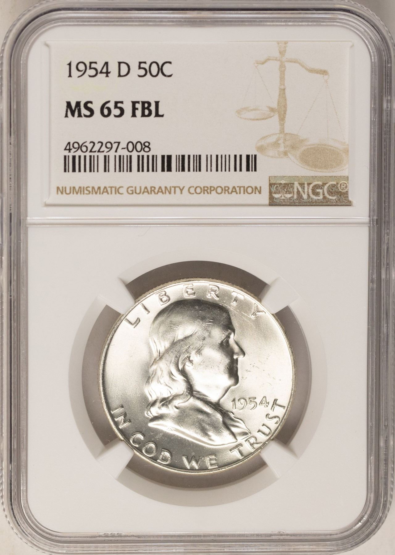 One 1954-D Franklin Half Dollar Coin NGC MS65FBL.