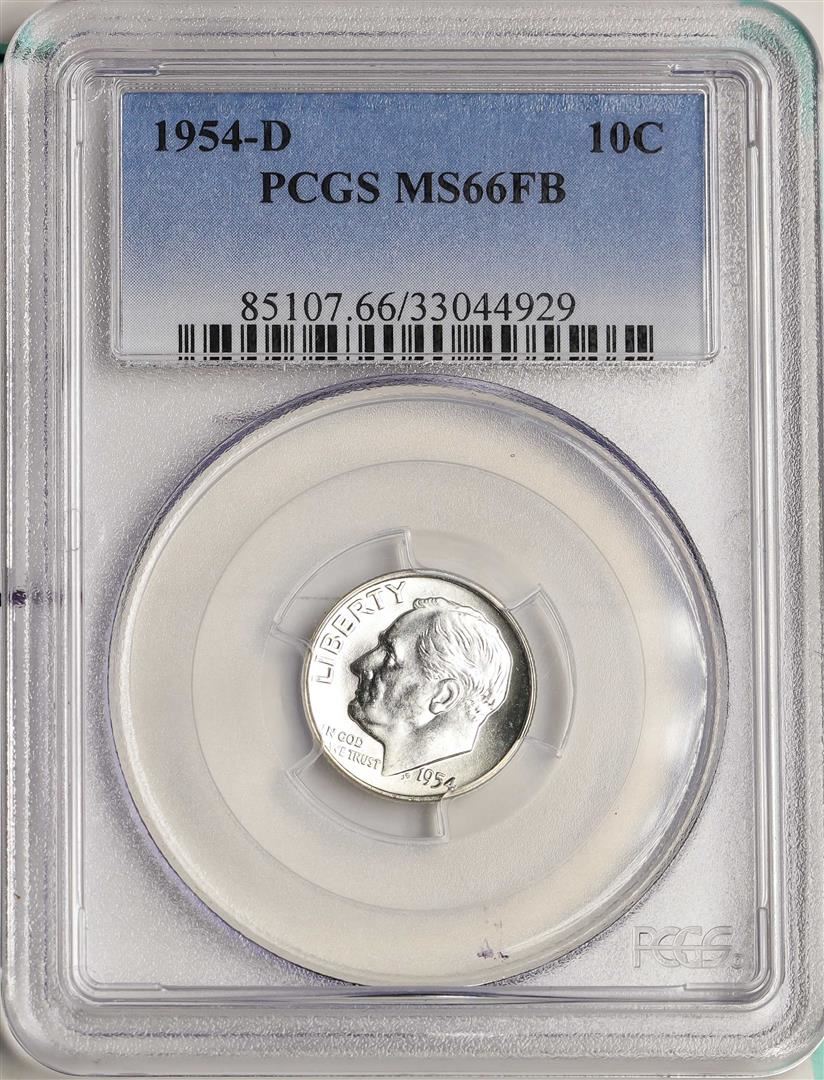 One 1954-D Roosevelt Dime Coin PCGS MS66FB. PCGS Graded.
