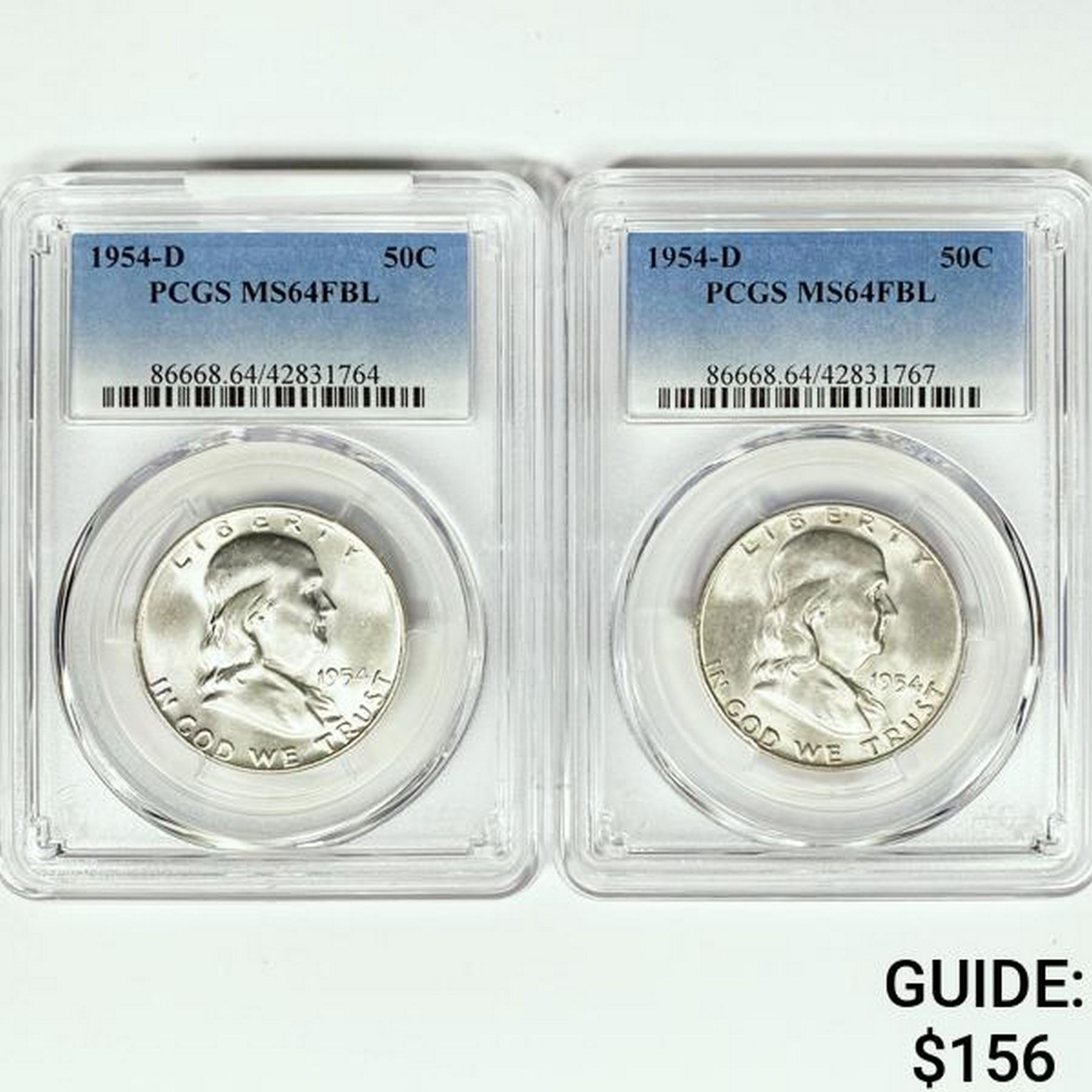 1954-D Set (2) Franklin Half Dollar PCGS MS64 FBL