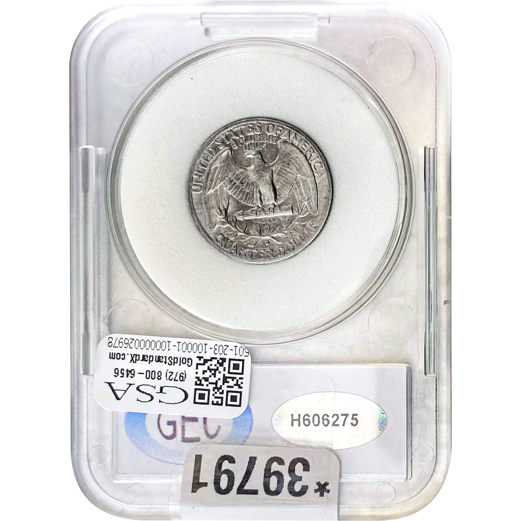 COINS AND CURRENCY LISTED IN GSA’S CATALOG AS GRADED AND ENCAPSULATED BY PCGS, NGC, ANACS, ICG, PCGS CURRENCY, PMG, PCGS BANKNOTE GRADING, CMC OR ANY OTHER THIRD-PARTY GRADING SERVICE ARE LIKEWISE SOLD “AS-IS” EXCEPT AS EXPRESSLY SET FORTH HEREIN. ALL THIRD-PARTY GRADING SERVICE GUARANTEES, INCLUDING AUTHENTICITY, ARE THE SOLE RESPONSIBILITY OF THE THIRD-PARTY GRADING SERVICE AND NOT WARRANTIES OR GUARANTEES OF GSA. BIDDERS SHOULD CONTACT THESE THIRD-PARTY GRADING SERVICES DIRECTLY WITH RESPECT TO ANY CLAIMS OR QUESTIONS THEY MAY HAVE CONCERNING THEIR GUARANTEES AND WARRANTIES. BIDDERS ACKNOWLEDGE AND AGREE THAT AUCTIONEER IS NOT BOUND BY OR LIABLE FOR ANY OPINION OR CERTIFICATION BY ANY THIRD-PARTY GRADING SERVICE. REMOVAL OF A PRODUCT FROM ITS PROTECTIVE CASING OR HOLDER OR ALTERATION OF ANY COIN HOLDER WAIVES ALL RIGHTS CONCERNING THE PRODUCT CONTAINED THEREIN.