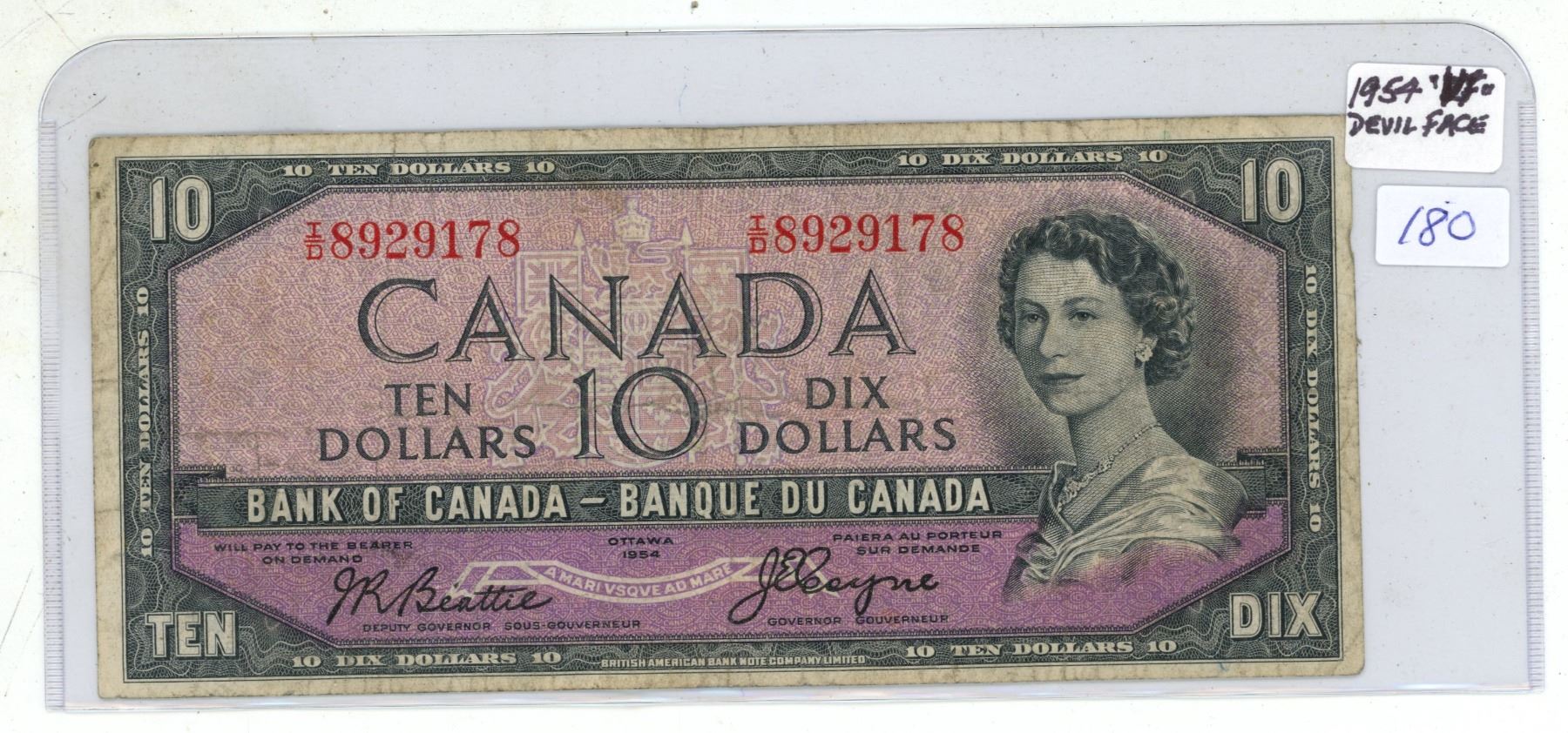 1954 "Devil Face" Ten Dollar Bill.