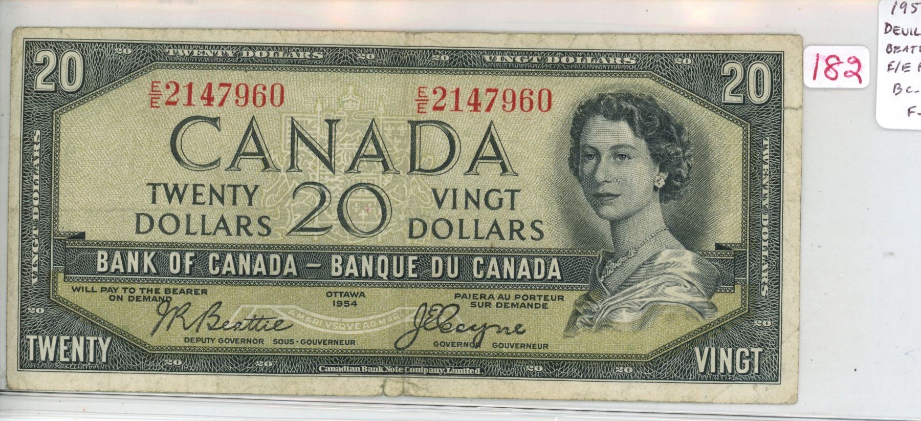 1954 Devil’s Face $20. Beattie-Coyne signatures. E/E Prefix. BC-33b. F-15. Scarce.