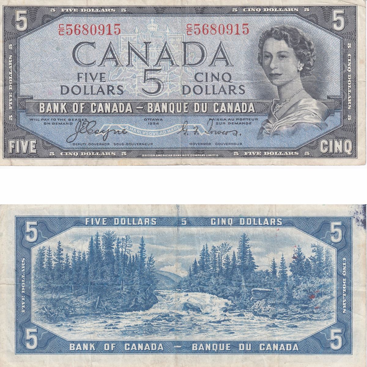1954 Devil's Face $5.00 Canada Note from the Bank of Canada