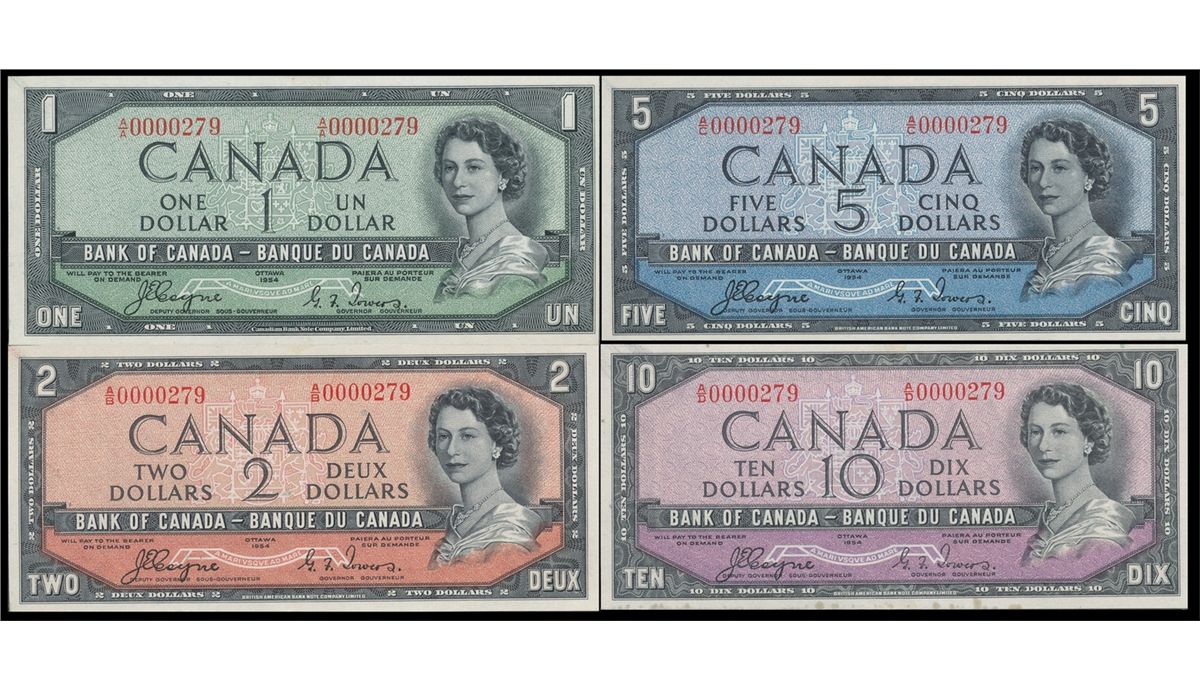 1954 Devil's Face Match Set; Lot includes $1, $2, $5 & $10 Coyne-Towers #0000279 issues. The $10 issue shows minor staining on botom border. A nice full Choice UNC Set.