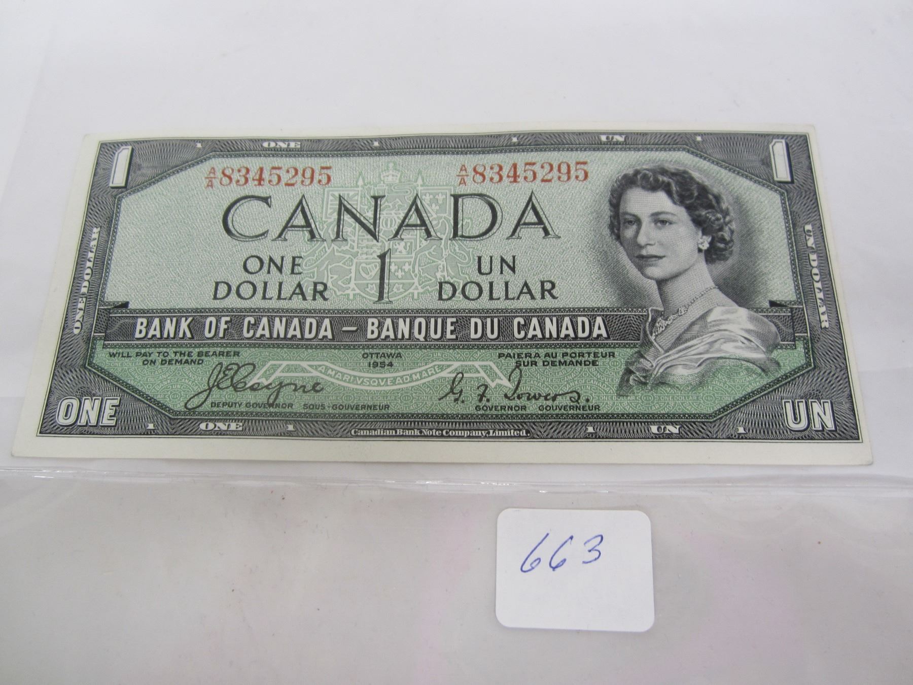 1954 Devils Face One Dollar Bill Coyne and Towers About Uncirculated