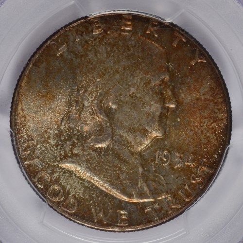 1954 FRANKLIN HALF DOLLAR, PCGS MS-65 FBL NICELY TONED