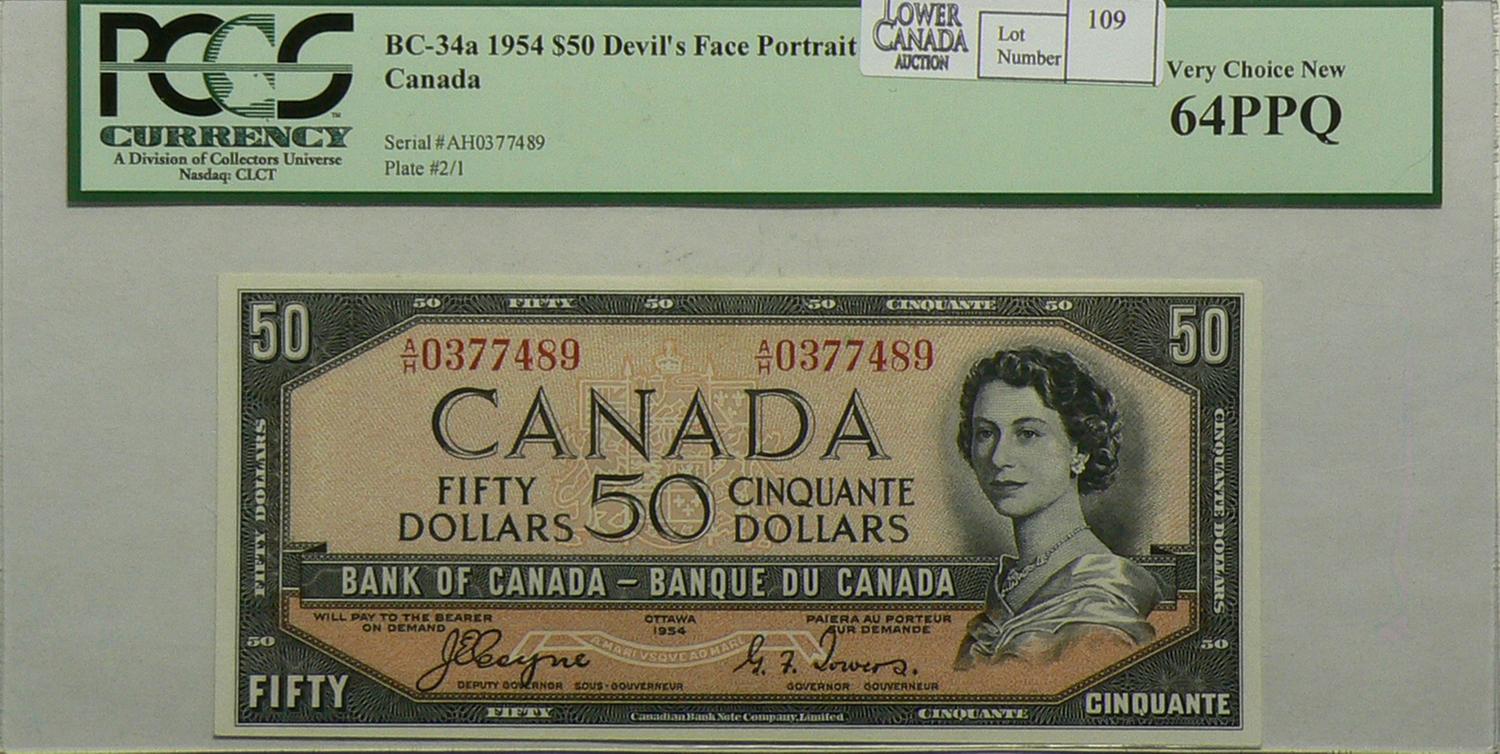 1954 Fifty Dollars Devil's Face, BC-34a, PCGS UNC-64 PPQ, Coyne Towers, serial A/H0377489.