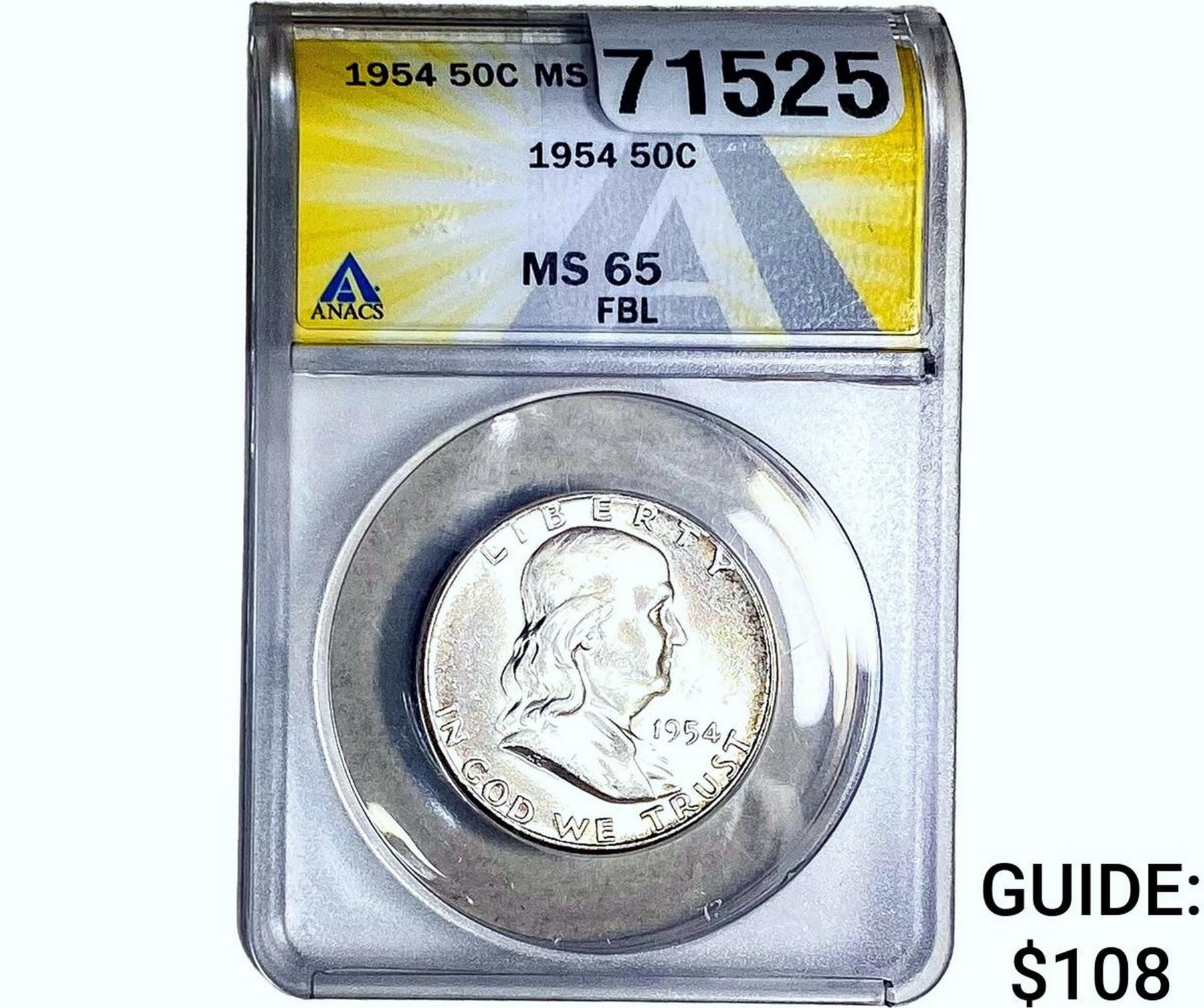 1954 Franklin Half Dollar ANACS MS65 FBL