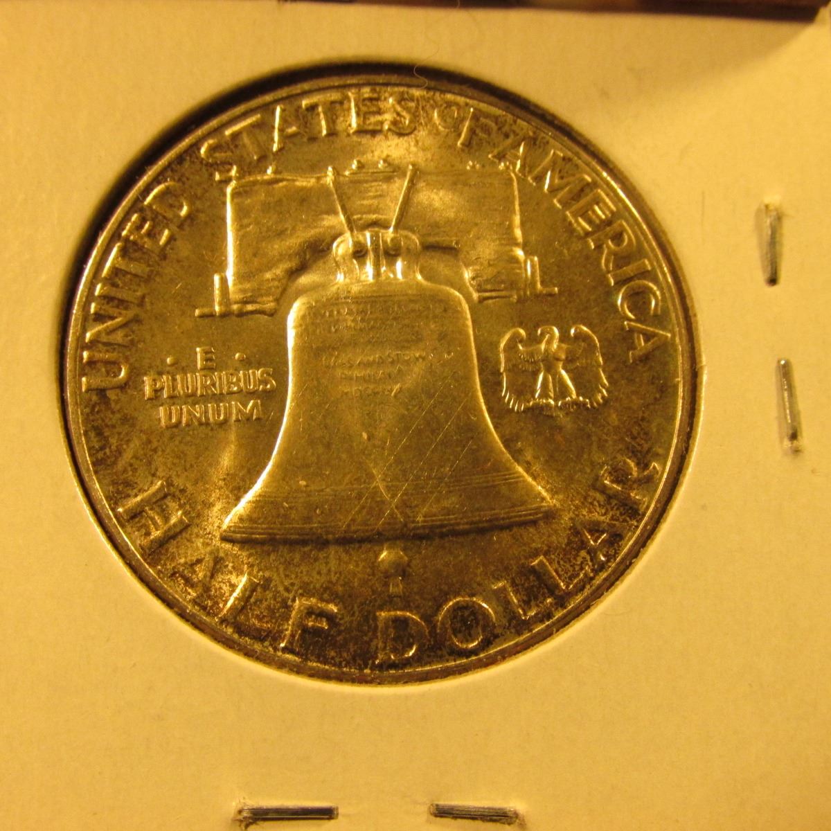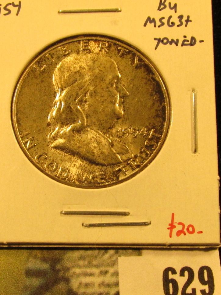1954 Franklin Half Dollar, BU MS63+ toned, value $20