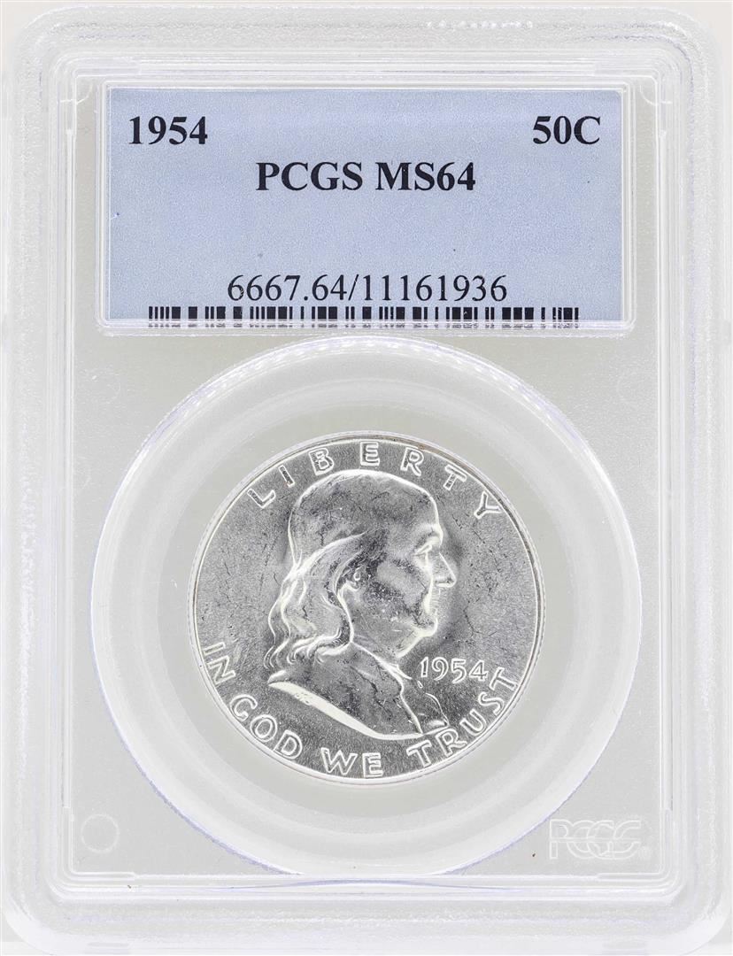 One 1954 Franklin Half Dollar Coin NGC MS64. NGC Certified.