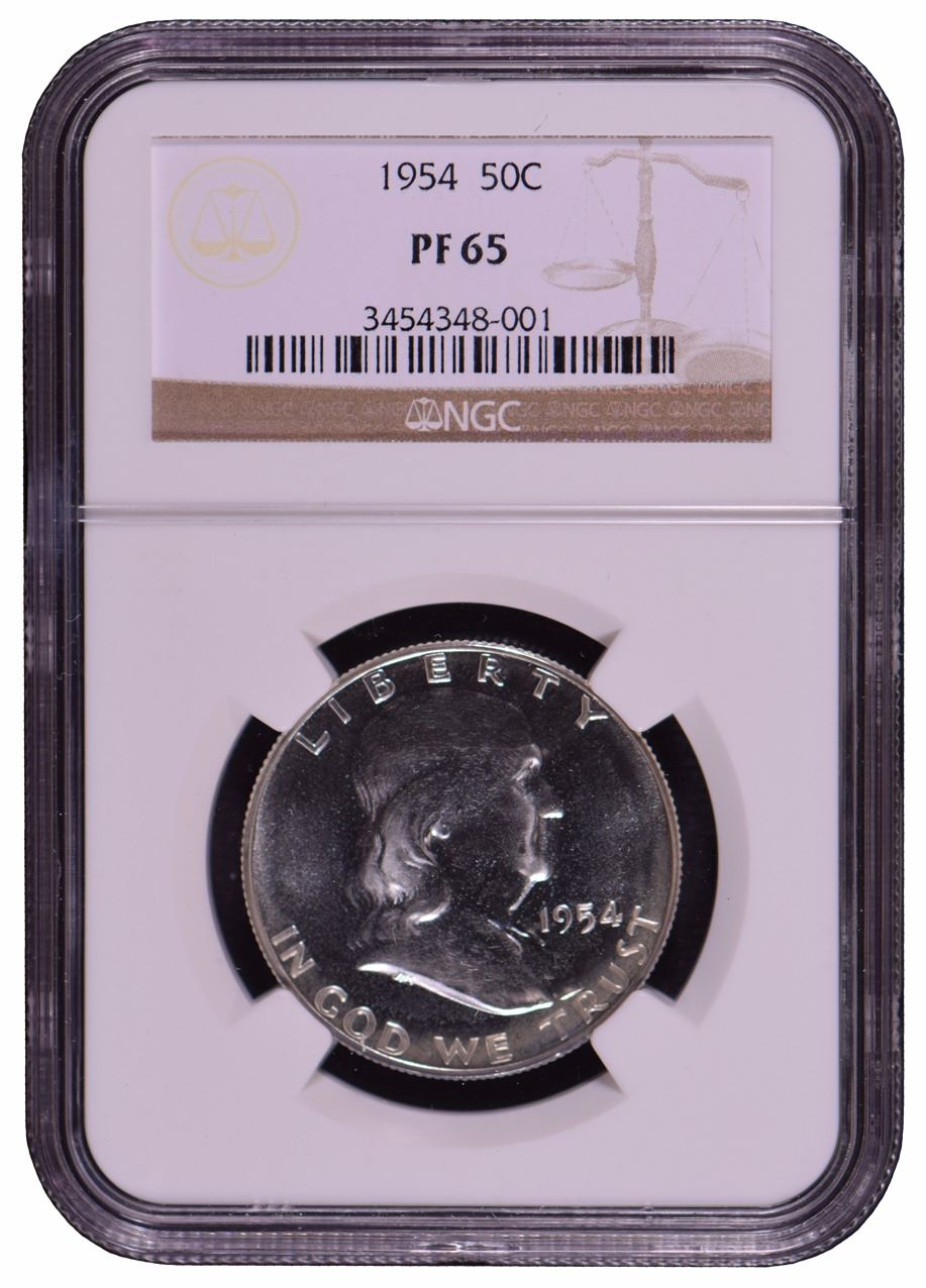 One 1954 Franklin Half Dollar Coin NGC PF65.