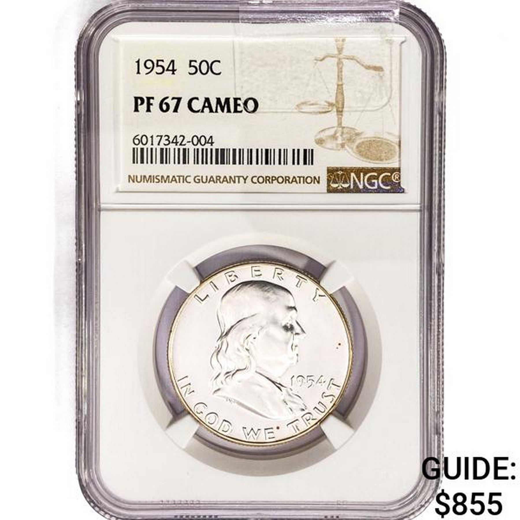 1954 Franklin Half Dollar NGC PF67 Cameo