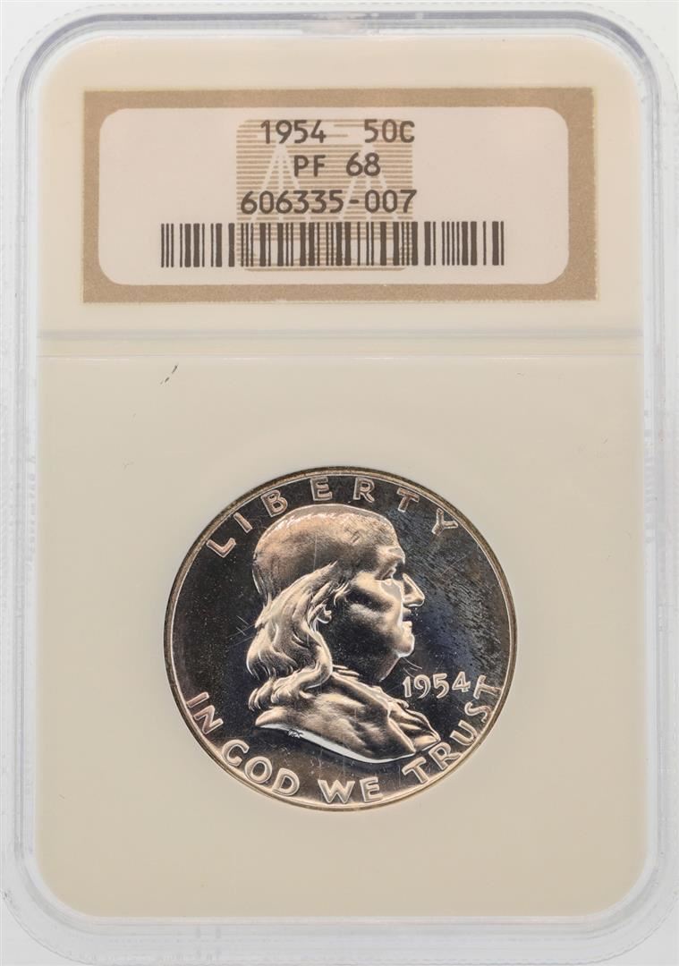 One 1954 Franklin Half Dollar Silver Proof Coin NGC PF68. NGC Certified.