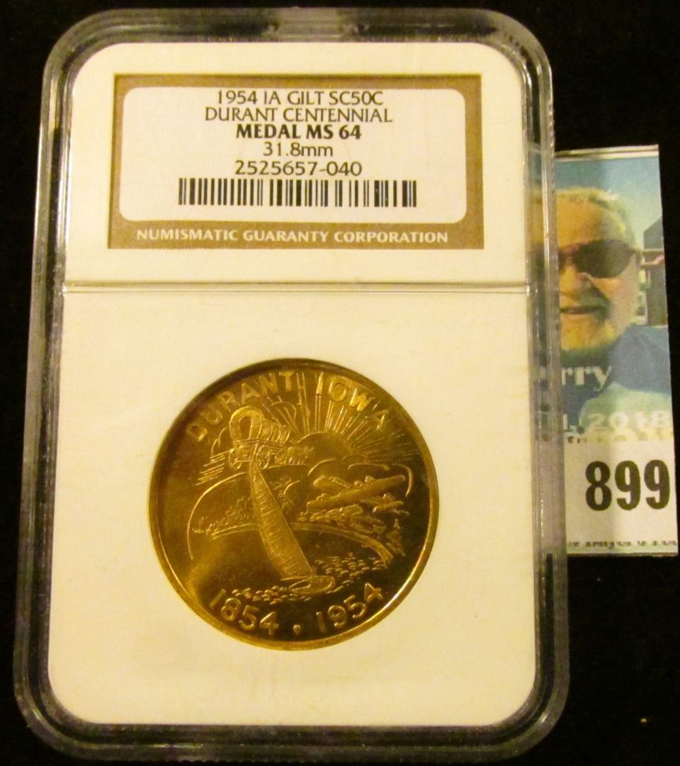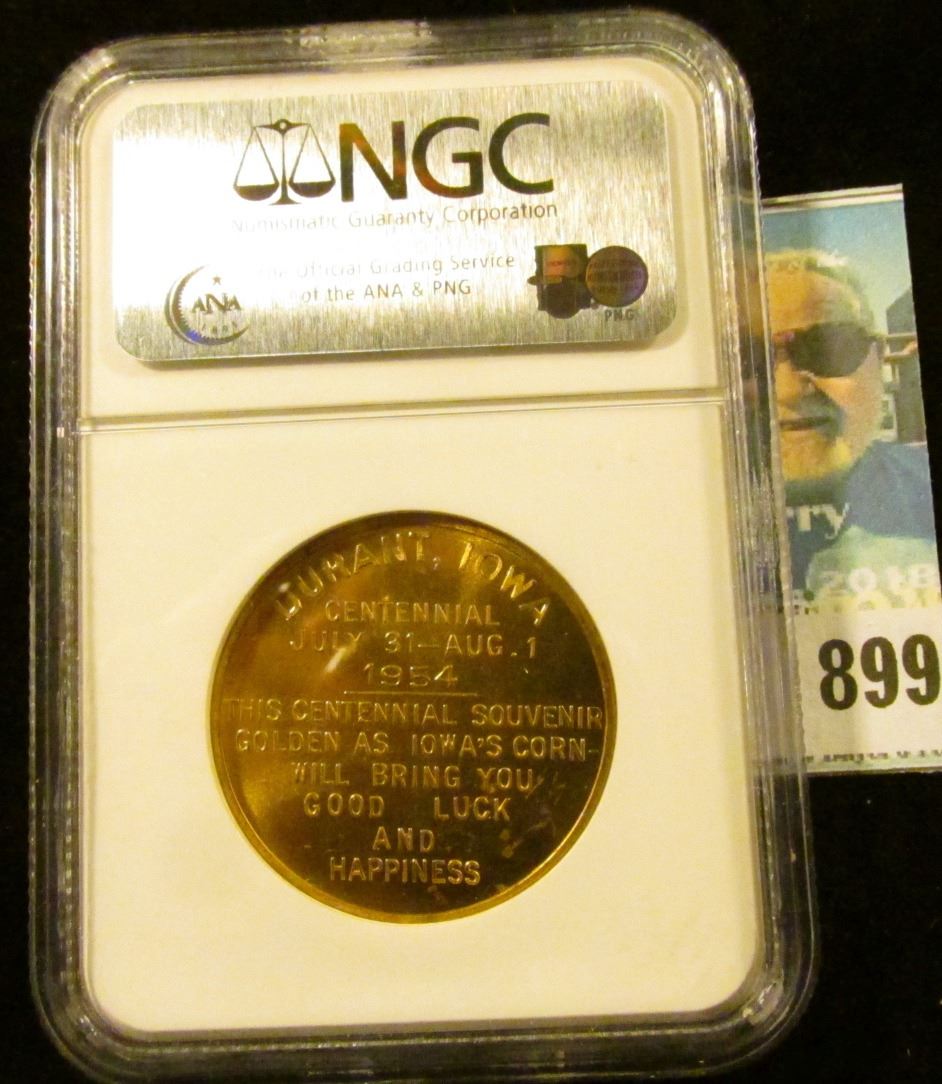 1954 IA GILT SC50C DURANT CENTENNIAL MEDAL MS 64 31.8mm. NGC slabbed.