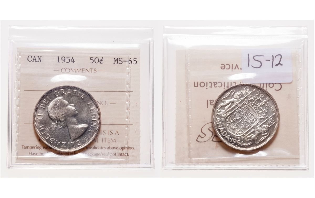 1954. ICCS Mint State-65. Traces of light toning over full underlying luster. A Gem.