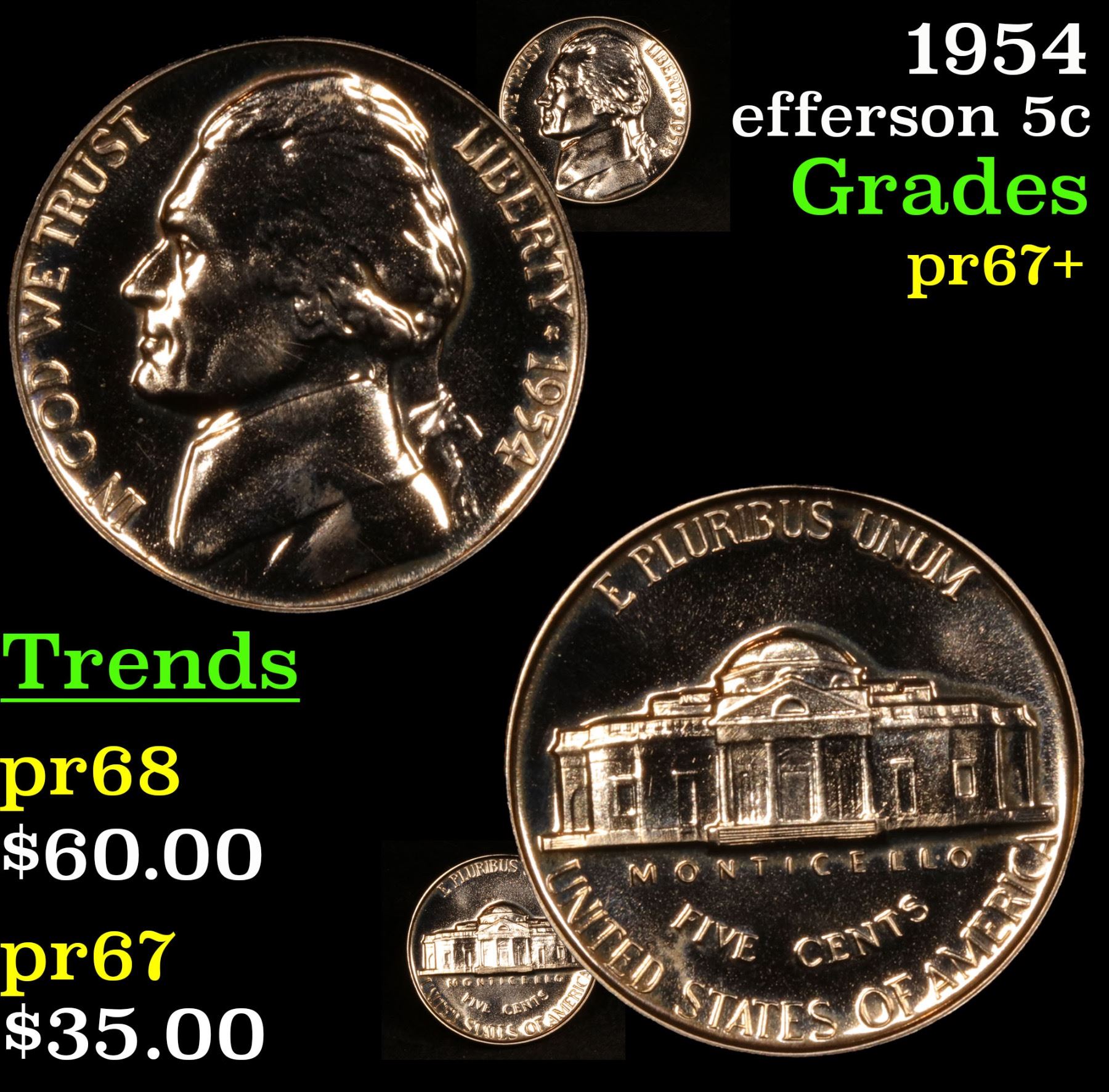 1954 Jefferson Nickel 5c Grades GEM++ Proof.