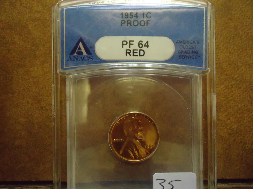 1954 LINCOLN CENT ANACS PF64 RED