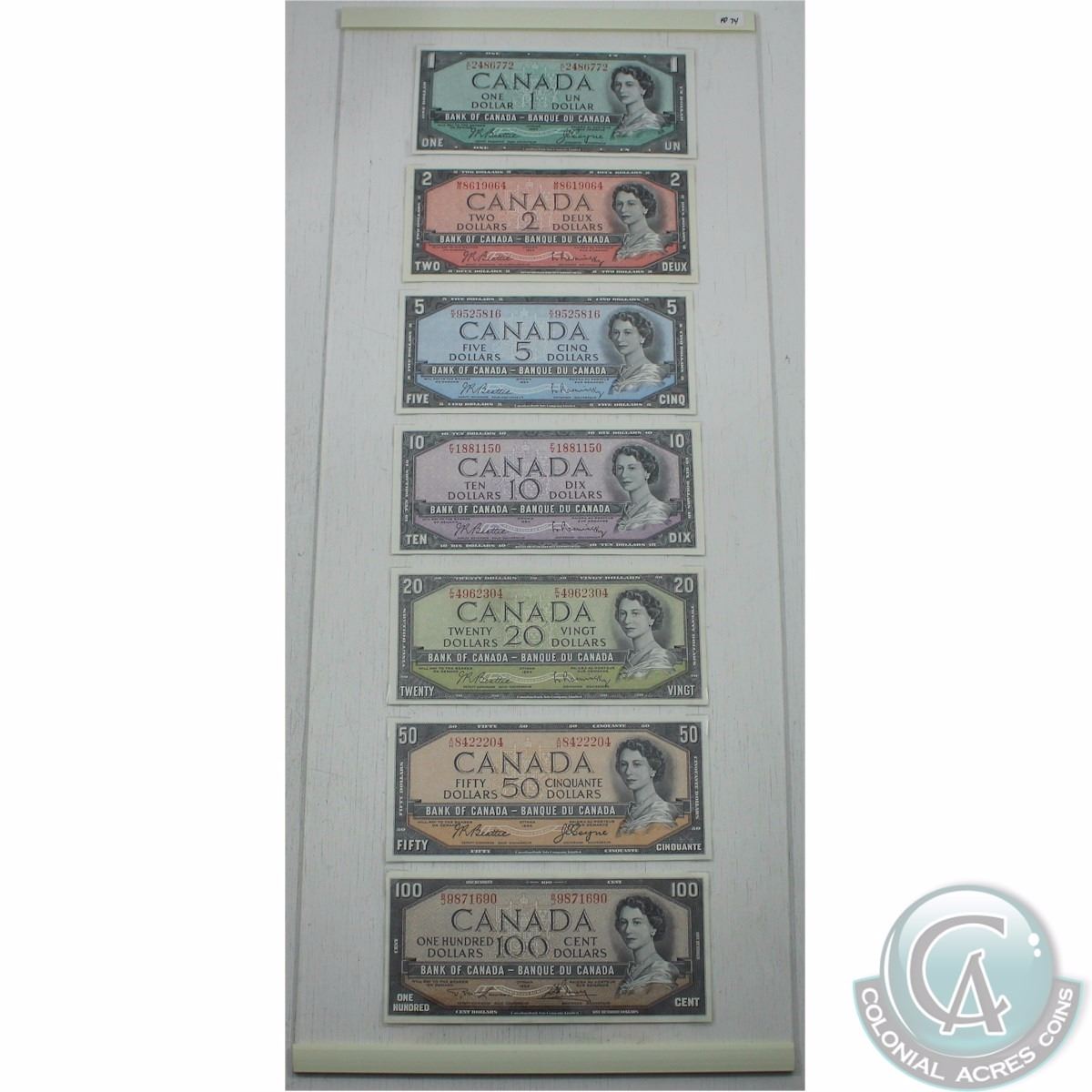1954 Modified Banknote Set. This Beautiful display piece features the $1, $2, $5, $10, $20, $50, & $