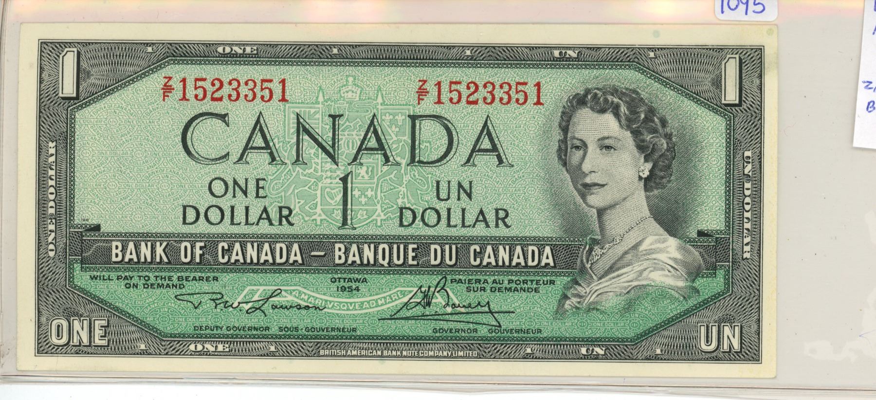 1954 Modified Portrait $1. Lawson-Bouey signatures. Z/F Prefix. BC-37d. VF-30.
