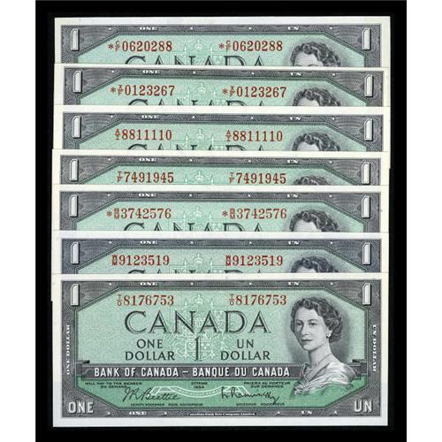 <B>1954 Modified Portrait $1s</B></I><BR> This lot has the following Modified Portraits in <B>Choice CU </B></I>or better<B> </B></I>- BC-37b; 37b-i; 37bA-i; 37c; 37d; and 37dA. There is also a BC-37cA in <B>XF-AU </B></I>condition.<BR><I>From The Thomas M. Flynn Collection</B></I><BR><BR><b>Shipping:</b> Coins & Currency (<a target="_blank" href="http://www.heritageauctions.com/common/shipping.php">view shipping information</a>)