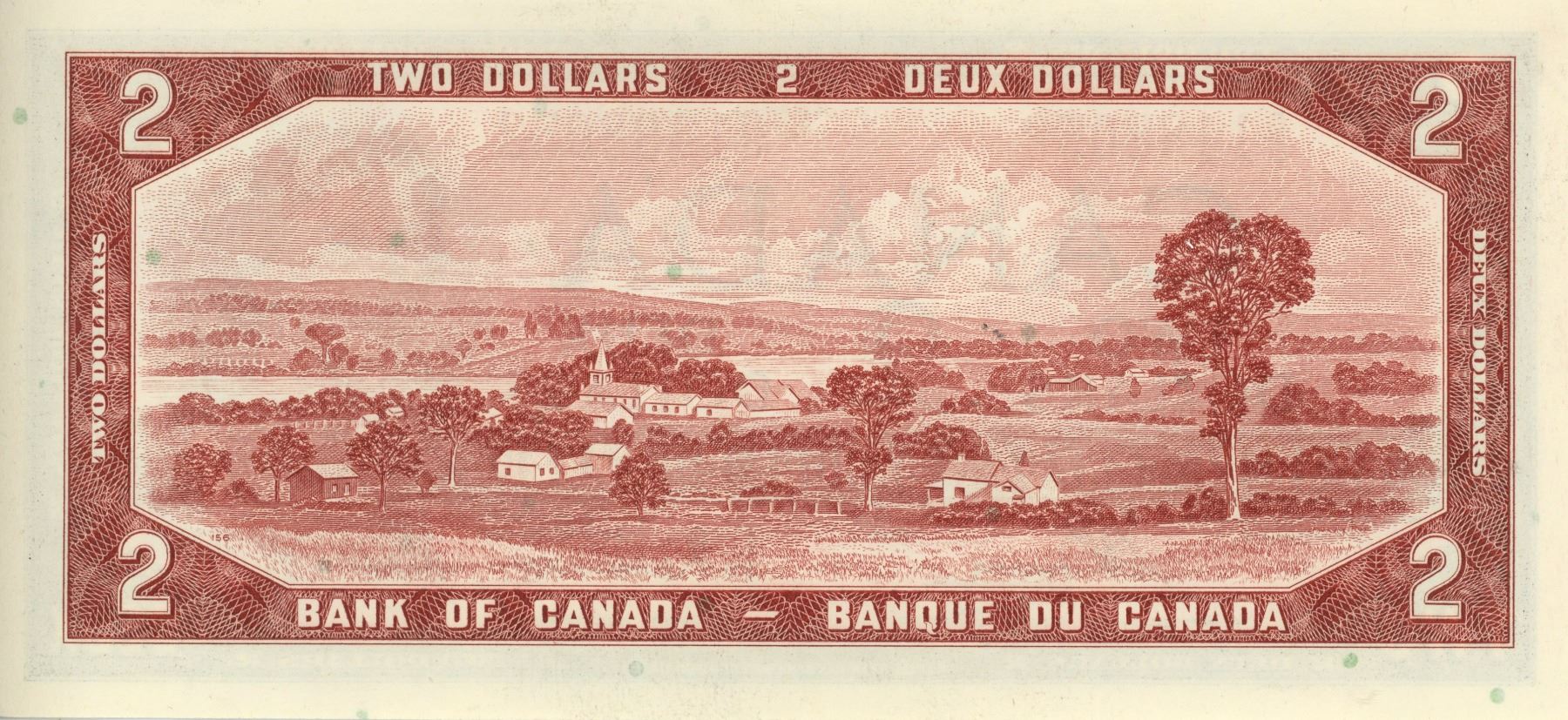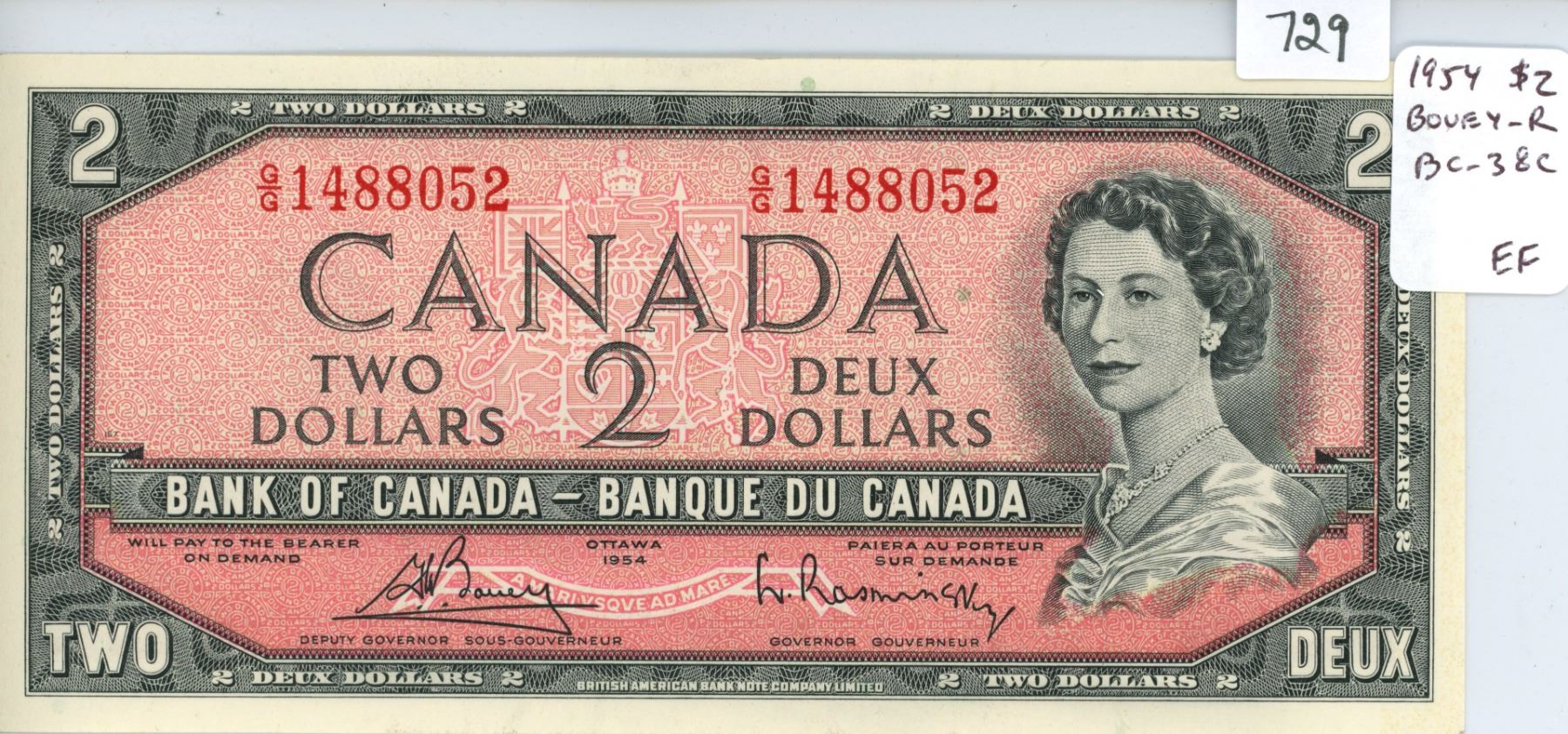 1954 Modified Portrait $2. Bouey-Rasminsky signatures. G/G Prefix. BC-38c. EF-40.