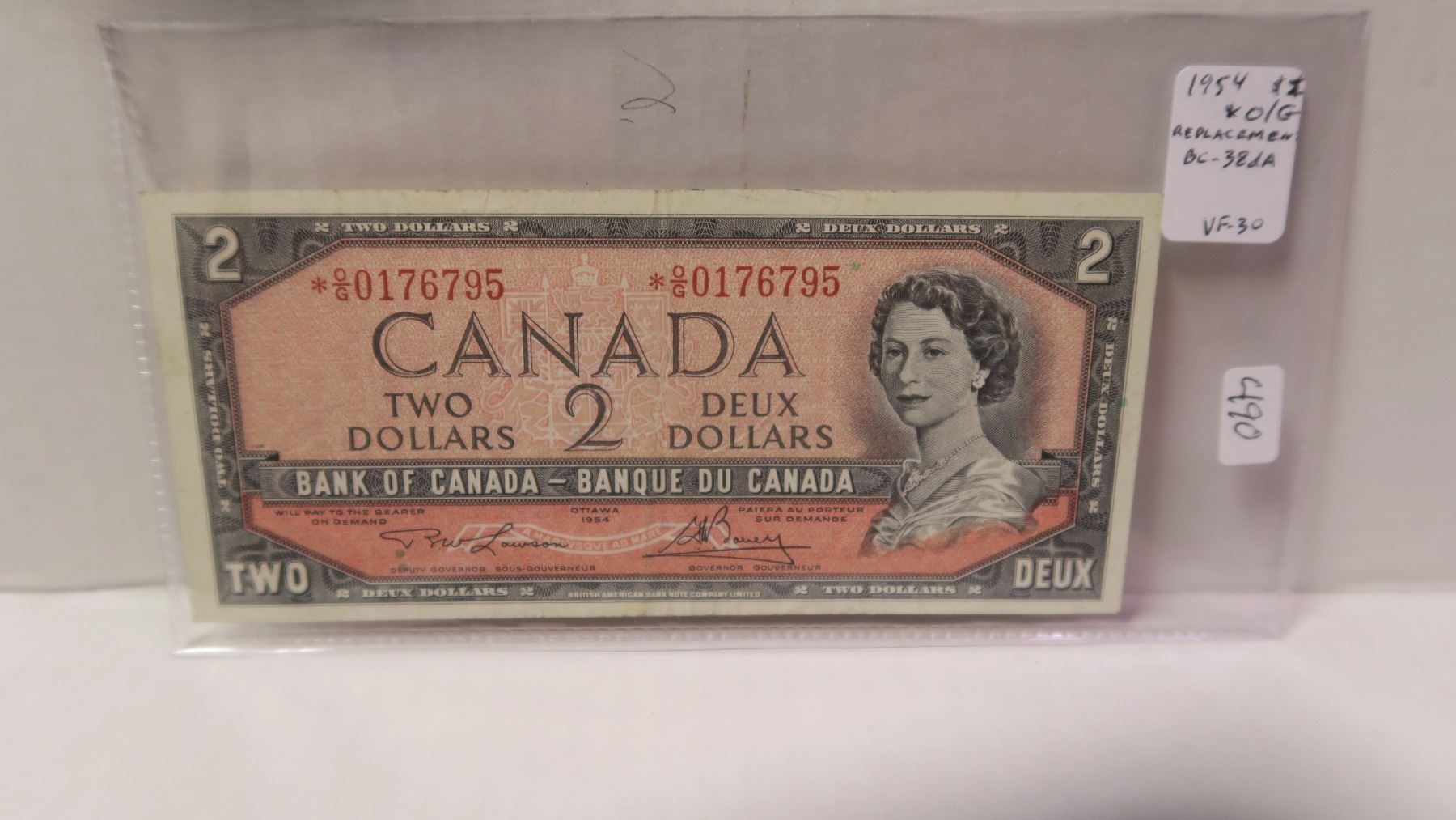 1954 Modified Portrait $2 Replacement. *O/G Prefix. Lawson-Bouey signatures. BC-38dA. VF-30.