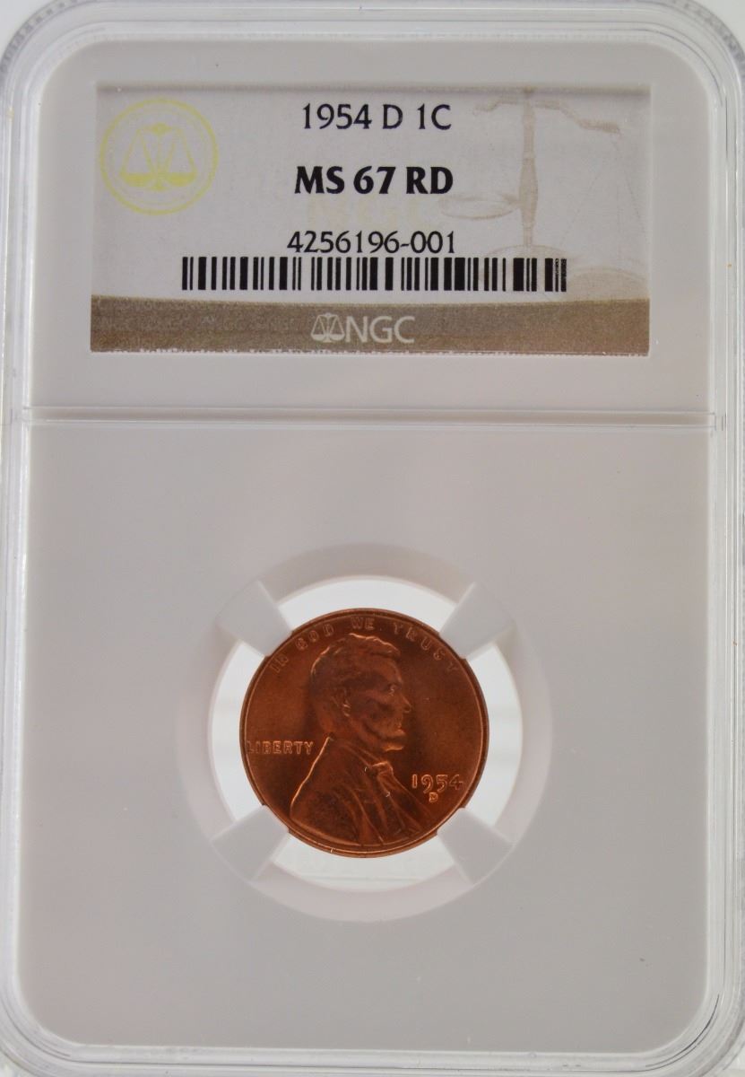 This 1954 MS67 RD Lincoln Wheat Penny looks as if it were struck yesterday, taken from the mint and the slabbed in its original state.