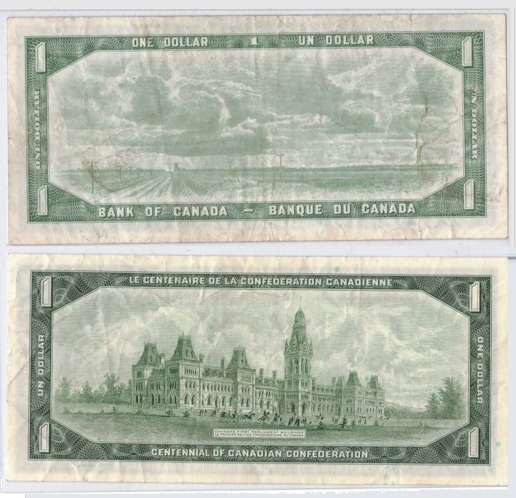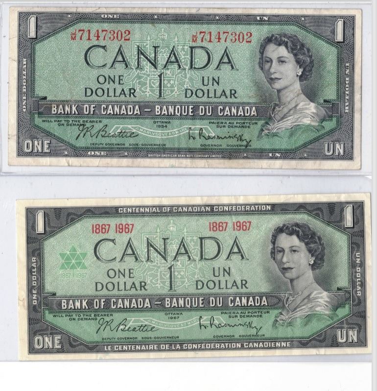 1954 One Dollar Bill AND 1967 Centennial Bank of Canada One Dollar Bank Note