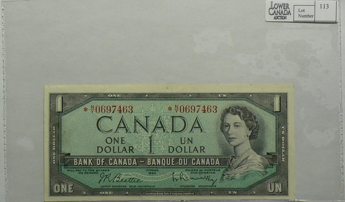 1954 One Dollar Replacement modified, BC-37bA, EF, Beattie Rasminsky, serial *N/Y0697463.