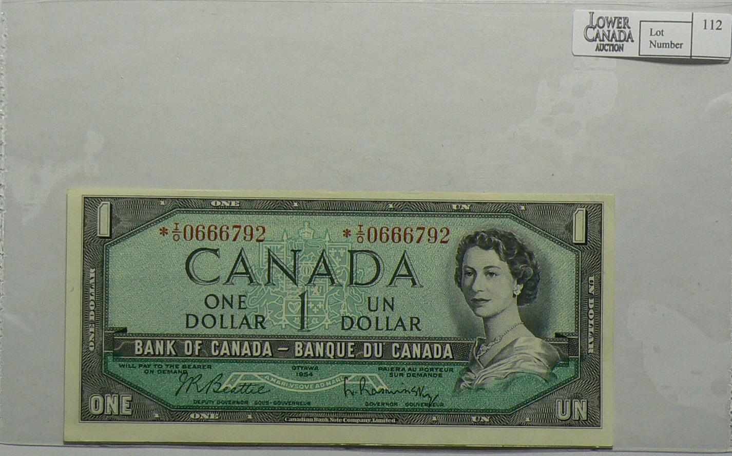 1954 One Dollar Replacement modified, BC-37bA, UNC with paper clip mark, Beattie Rasminsky, serial *I/O0666792.