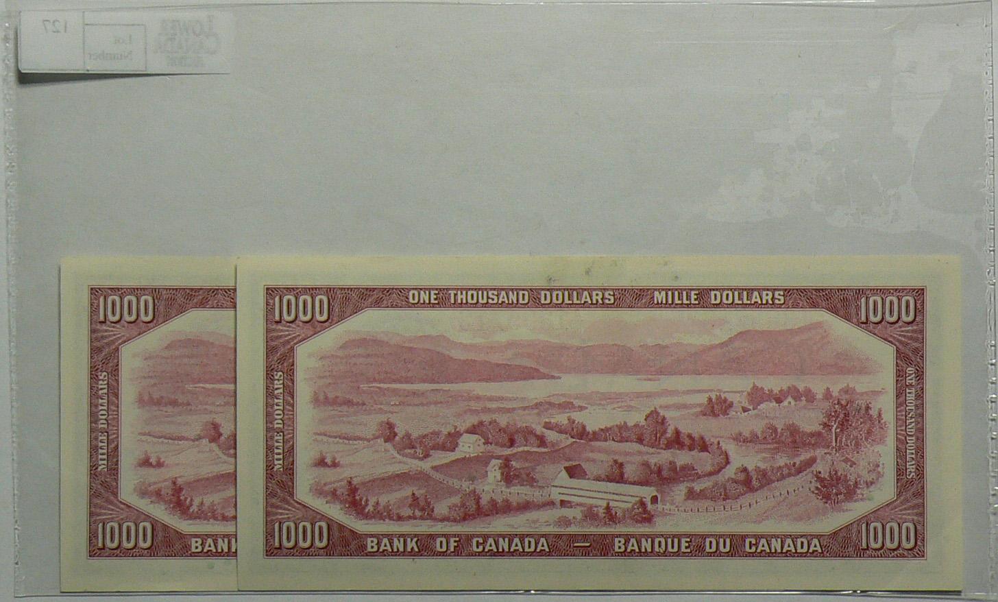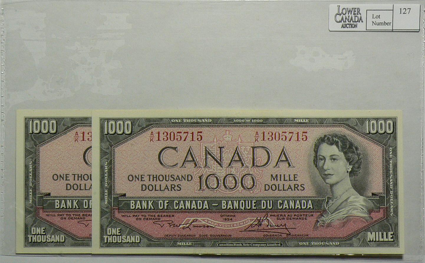 1954 One Thousand Dollars Modified, BC-44d Both Choice UNC, Lawson Bouey, serial A/K1305715-16. Pair of consecutive notes.