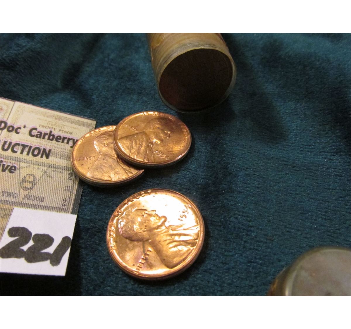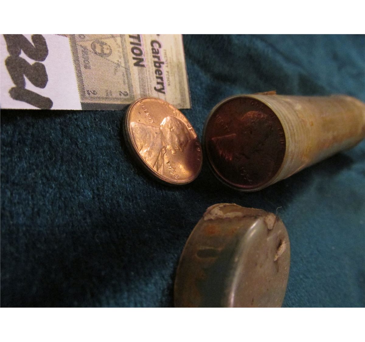 1954 P Original BU Roll of Lincoln Cents. This plastic tube has done some shrinking as well but the coins seem to be in great condition. CDN bid is $25.00.