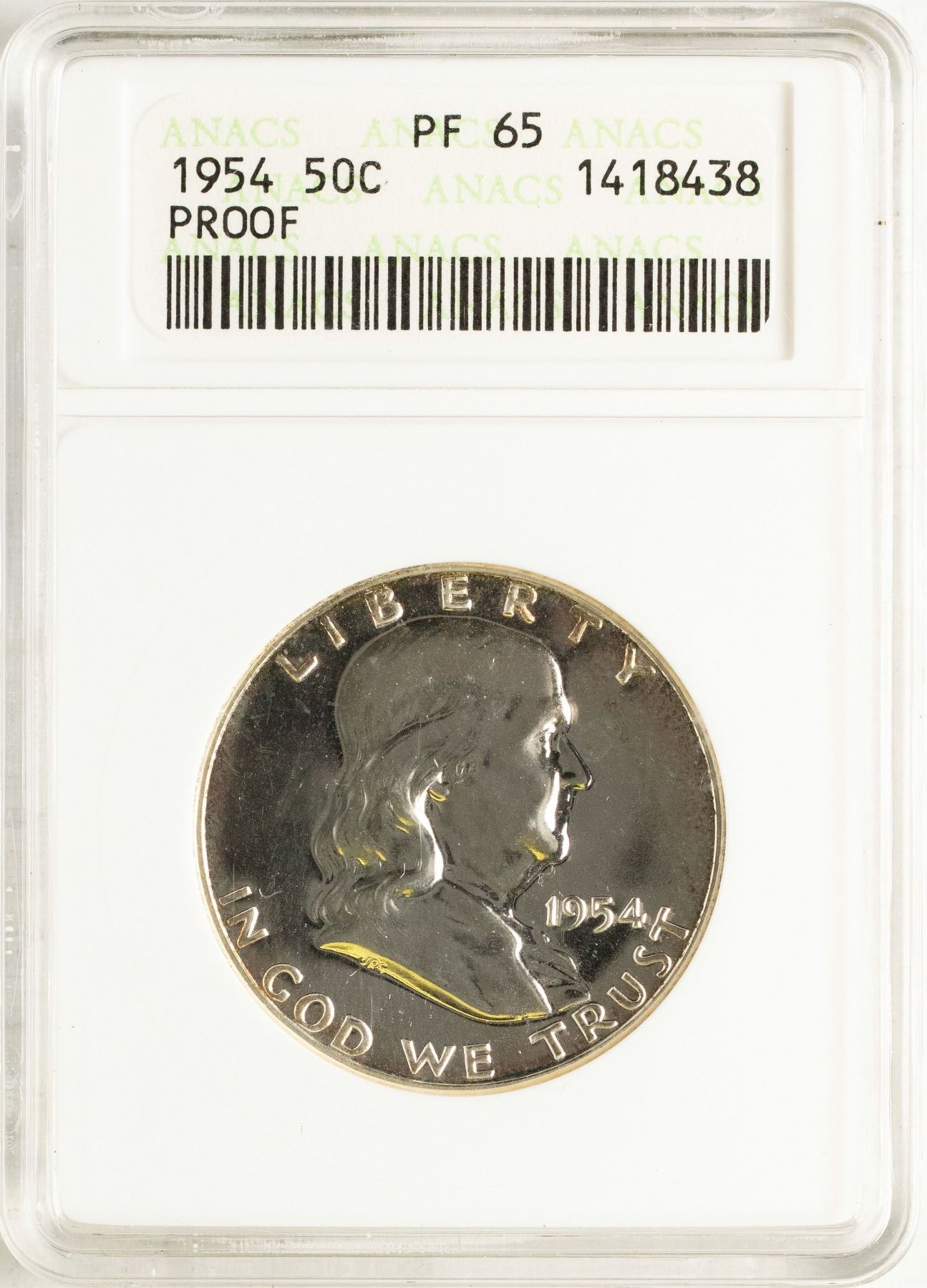 One 1954 Proof Franklin Half Dollar Coin ANACS PF65.