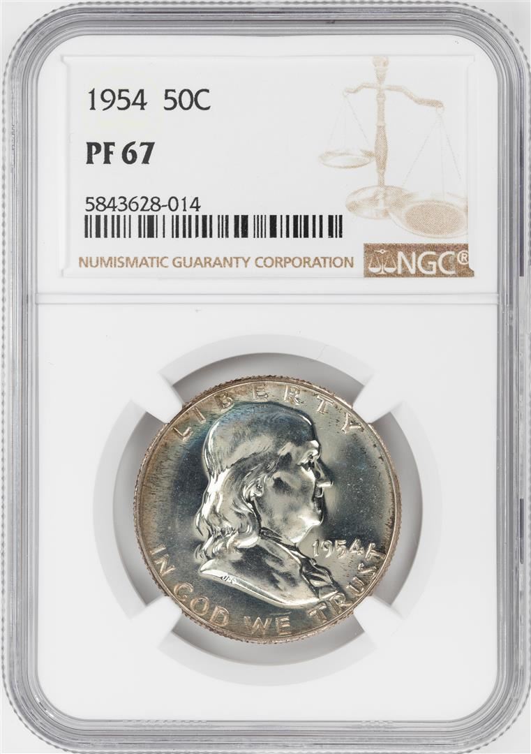 One 1954 Proof Franklin Half Dollar Coin NGC PF67. NGC Certified.