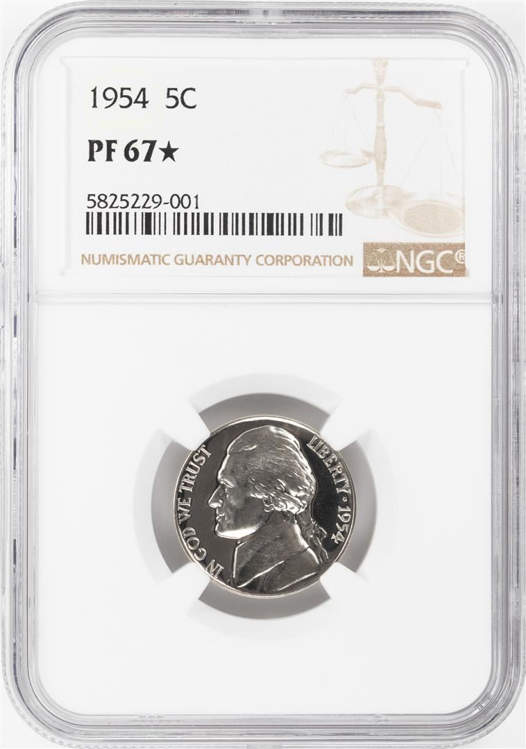 One 1954 Proof Jefferson Nickel Coin NGC PF67 Star. NGC Certified.
