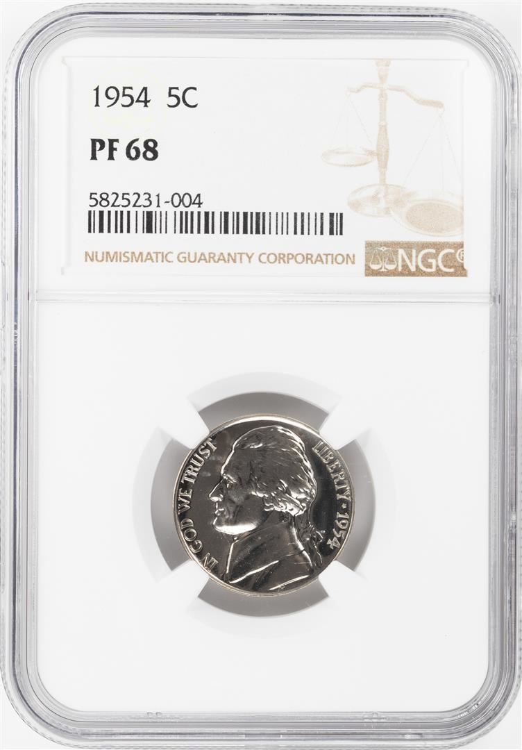 One 1954 Proof Jefferson Nickel Coin NGC PF68. NGC Certified.