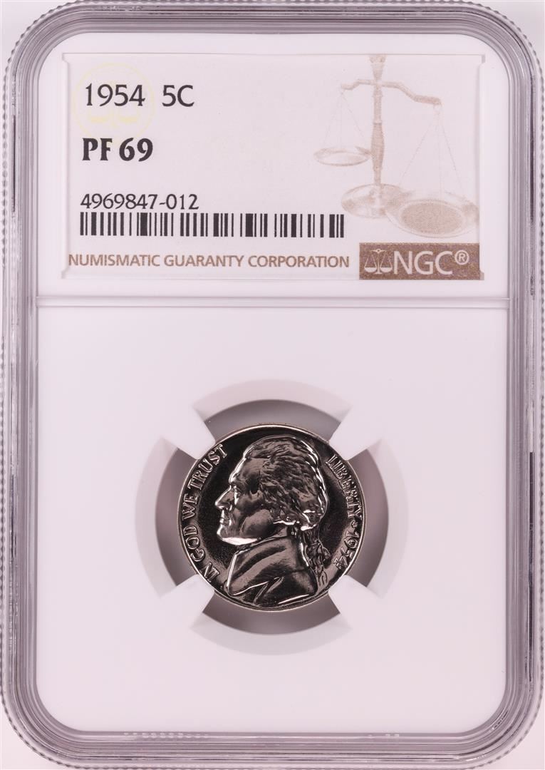 One 1954 Proof Jefferson Nickel Coin NGC PF69. NGC Certified.
