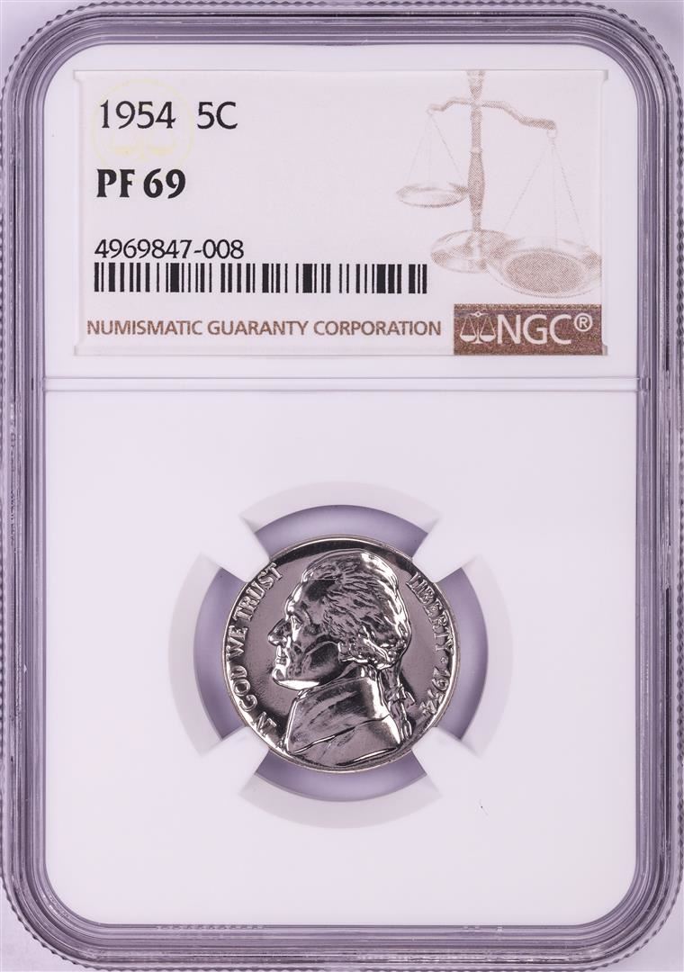 One 1954 Proof Jefferson Nickel Coin NGC PF69. NGC Certified.