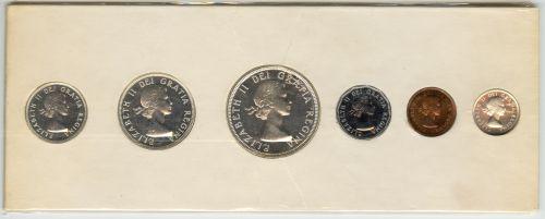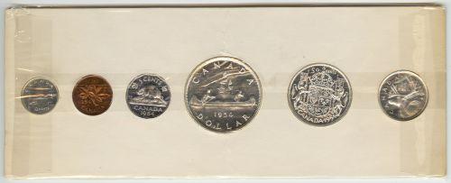 1954 Proof Like Set on original card from the mint, plastic fairly intact with some scotch tape to keep it sealed. Cent is red NSF other coins are SF with very little toning.