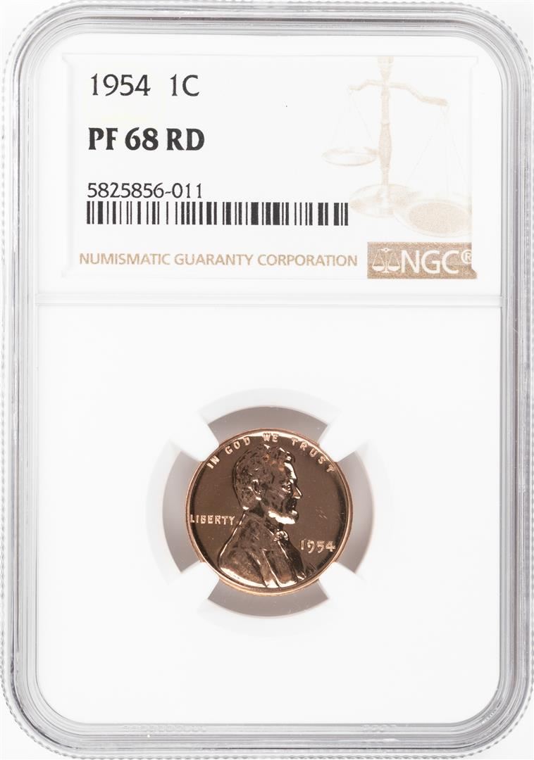 One 1954 Proof Lincoln Wheat Cent Coin NGC PF68RD. NGC Certified.