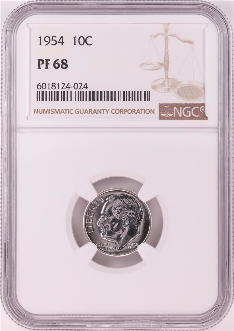 One 1954 Proof Roosevelt Dime Coin NGC PF68. NGC Certified.