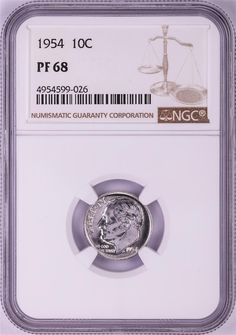 One 1954 Proof Roosevelt Dime Coin NGC PF68. NGC Certified.