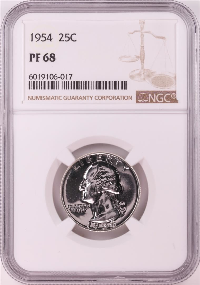One 1954 Proof Washington Quarter Coin NGC PF68. NGC Certified.