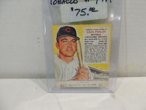 1954 RED MAN #9 BASEBALL PLAYER CARD DAVE PHILLEY. AS SHOWN. VIEW PICTURE FOR DETAIL.