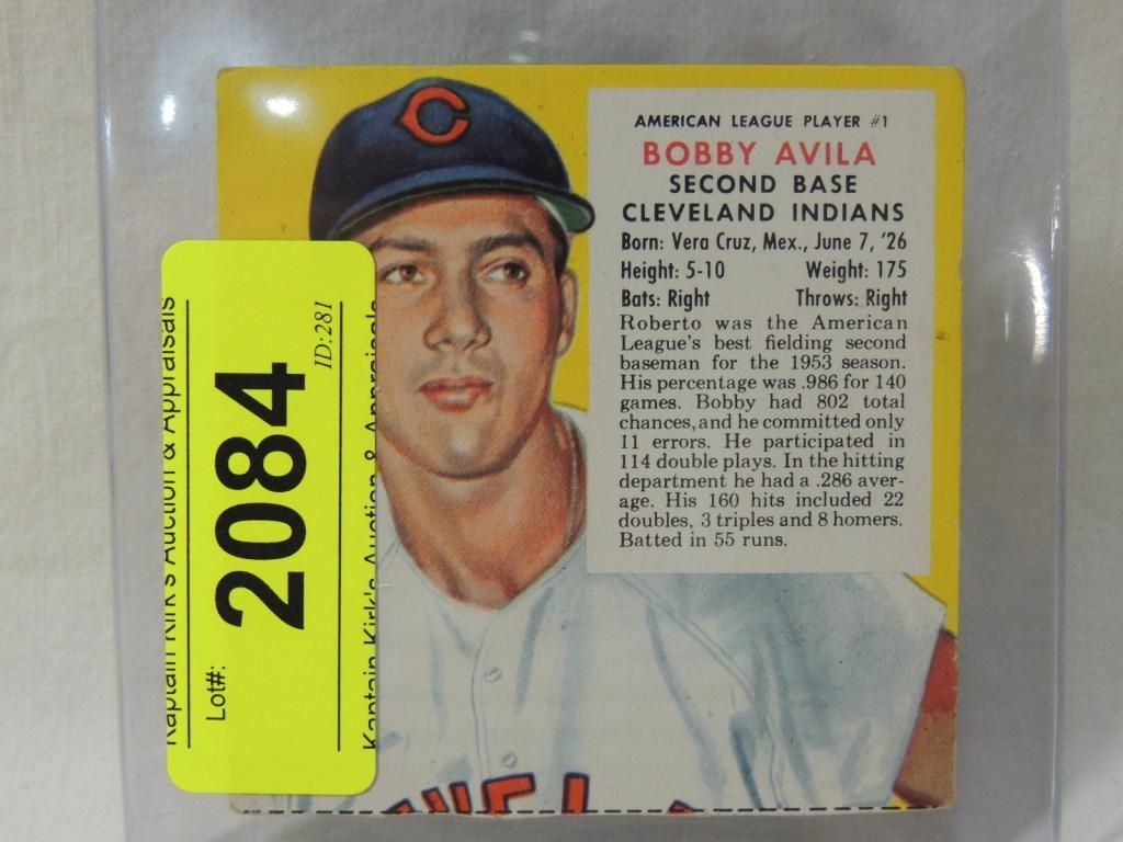 1954 RED MAN TOBACCO BOBBY AVILA 1A BASEBALL CARD. BASEBALL COLLECTIBLE. VINTAGE CARD. GOOD CONDITION. IN PLASTIC SLEEVE. AS SHOWN. SEE PHOTO FOR MORE DETAILS.